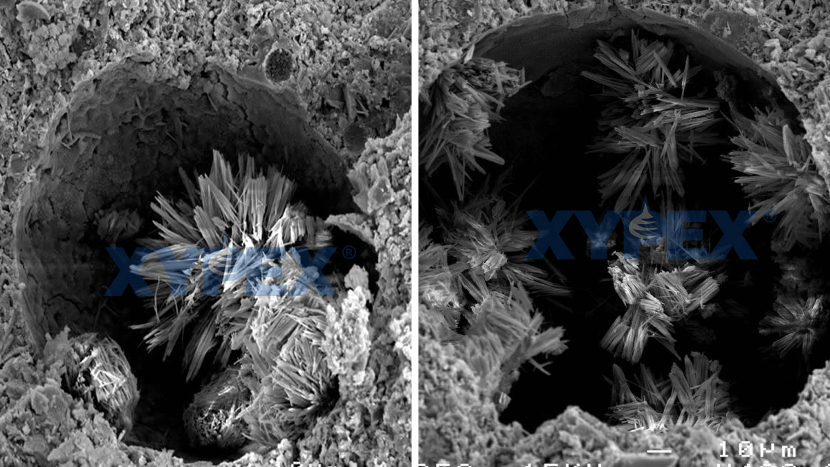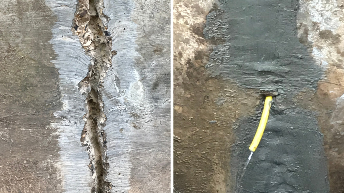 (left) Broken out cracks before application of Xypex and (right) after application - Courtesy of SMR Projects Ltd - Xypex UK Distributors
