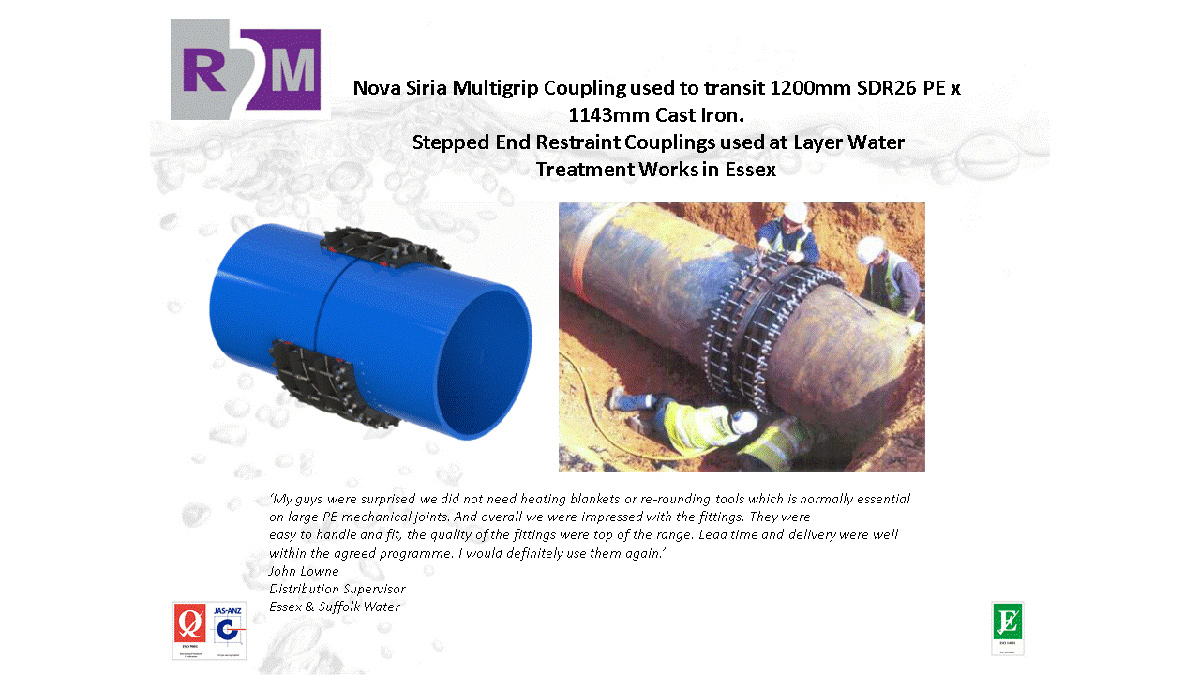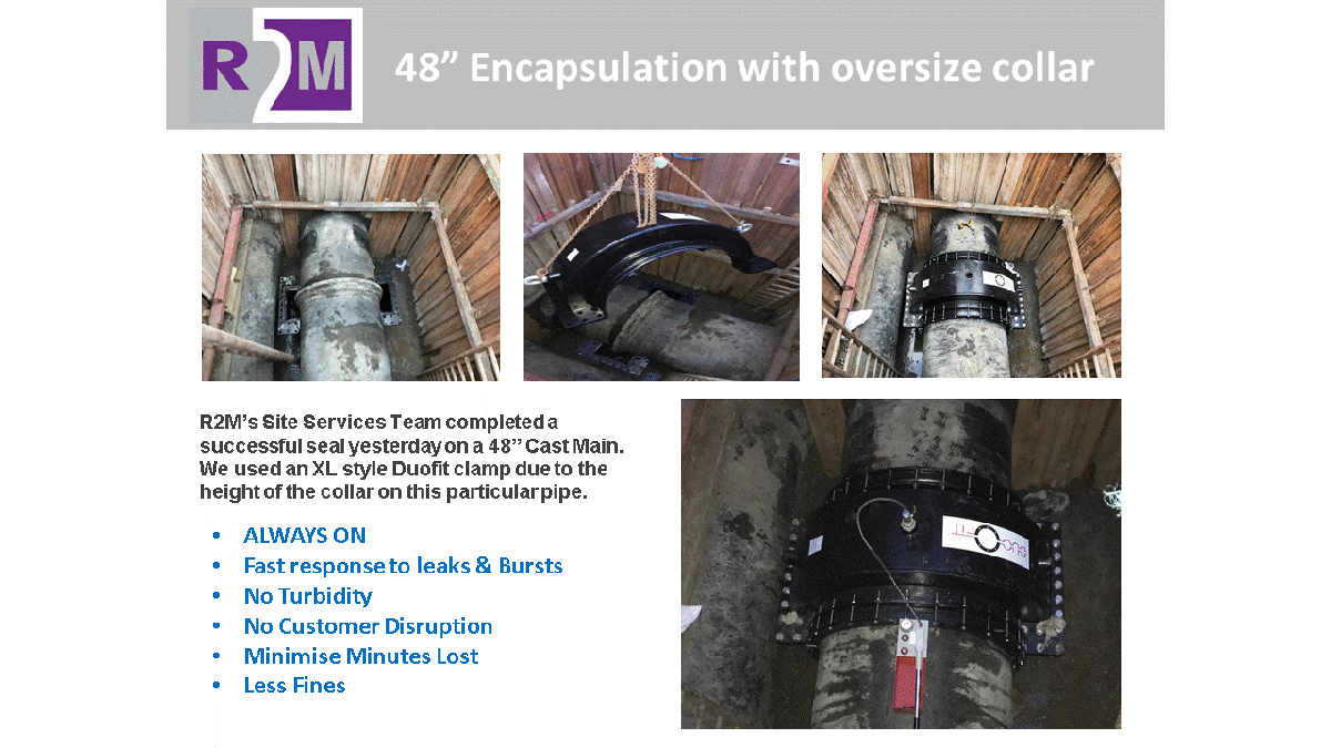 We have built up an outstanding reputation for innovation particularly in the areas of Wide Tolerance End Restraint & Encapsulation fittings. In recent years, further introducing the EZ Valve (Live Valve Insertion) system, 3S Smart Valve Actuation, and Valve Unjammer. R2M is also unique in having a true 24/7 Emergency Call Out Service in case of water company supply interruptions events.